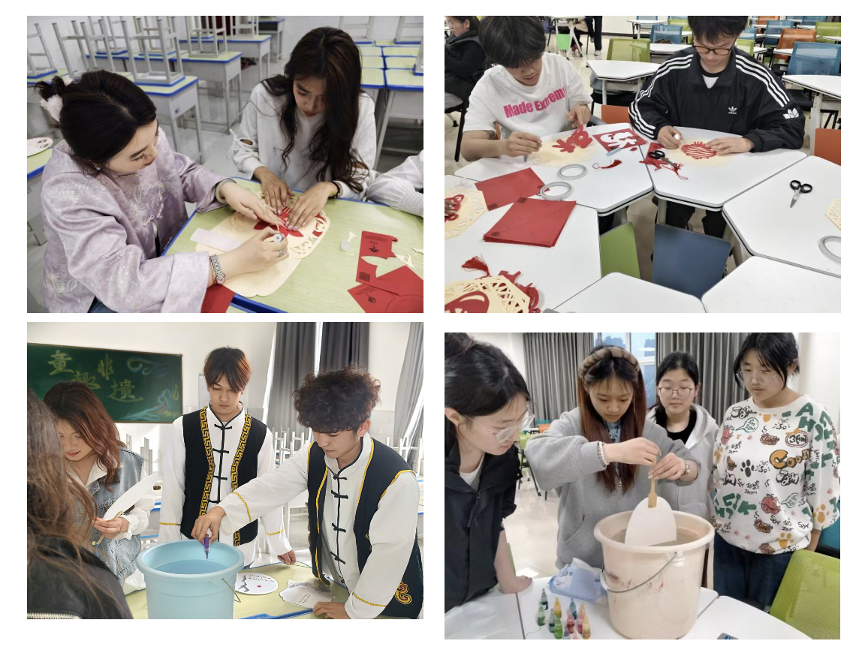 实践体验环节,两地学子同步动手、云端互动。志愿者实时指导、耐心答疑。漆扇制作中,大家手持素扇,细心勾勒,一把把独具特色的漆扇次第呈现,将传统技艺与青春创意完美融合。剪纸课堂上,同学们对折、画样、剪裁,一把剪刀、一张红纸,在指尖流转间,剪出吉祥纹样与创意图案,尽显传统民间艺术的灵动之美。虽相隔千里,两地青年默契协作、热情分享,充分展现了新时代青年积极向上、乐于传承的精神风貌,进一步凝聚起中华民族共同体的强大向心力。