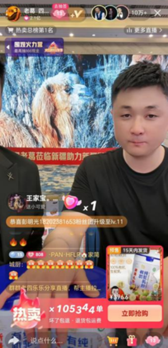 直播当天,主播老葛的直播间里气氛热烈。来自新疆阿克苏的冰糖心苹果成为全场焦点,这种因独特气候条件而形成的天然糖心果肉,口感脆甜多汁,一经上架便受到粉丝热捧,单品销量迅速突破数十万单。与此同时,产自天山牧场的有机驼奶也凭借其珍稀的营养价值和独特的地域属性,在直播间创下了令人瞩目的销售佳绩。此外,库尔勒香梨、新疆长绒棉被、若羌灰枣、普罗旺斯西红柿等一大批具有浓郁新疆特色的产品也悉数亮相,覆盖了食品、日用品等多个品类。